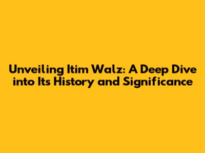 Unveiling Itim Walz: A Deep Dive Into Its History And Significance