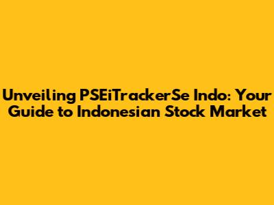 Unveiling PSEiTrackerSe Indo: Your Guide To Indonesian Stock Market