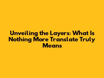 Unveiling The Layers: What 'Is Nothing More Translate' Truly Means