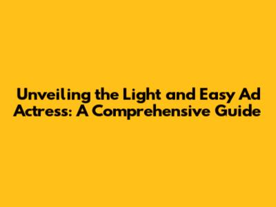 Unveiling The Light And Easy Ad Actress: A Comprehensive Guide