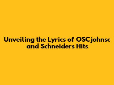 Unveiling The Lyrics Of OSCjohnsc And Schneider's Hits