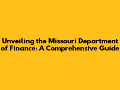 Unveiling The Missouri Department Of Finance: A Comprehensive Guide