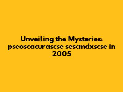 Unveiling The Mysteries: Pseoscacurascse Sescmdxscse In 2005