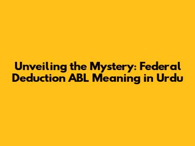 Unveiling The Mystery: Federal Deduction ABL Meaning In Urdu