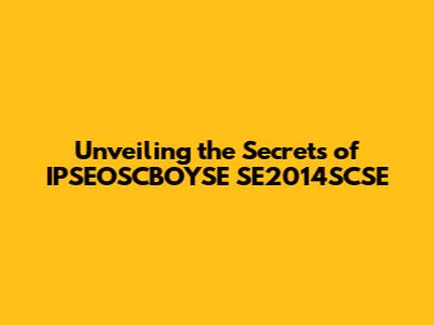 Unveiling The Secrets Of IPSEOSCBOYSE SE2014SCSE