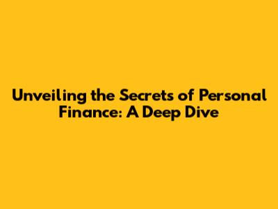 Unveiling The Secrets Of Personal Finance: A Deep Dive
