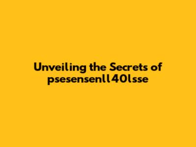 Unveiling The Secrets Of Psesensenll40lsse
