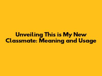 Unveiling 'This Is My New Classmate': Meaning And Usage