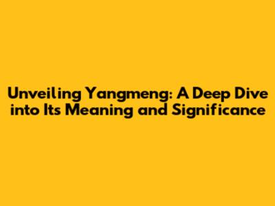 Unveiling Yangmeng: A Deep Dive Into Its Meaning And Significance