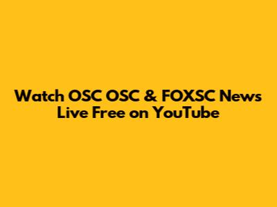 Watch OSC OSC & FOXSC News Live Free On YouTube