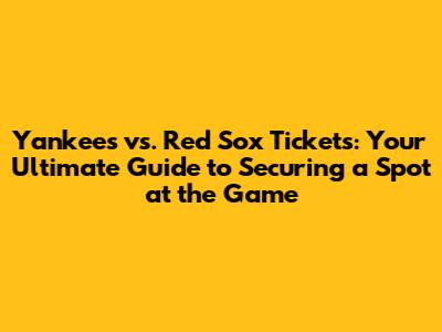 Yankees Vs. Red Sox: Get Your Tickets Now!