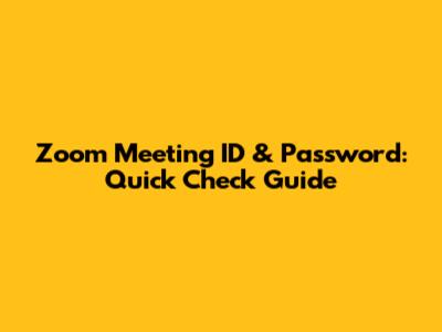 Zoom Meeting ID & Password: Quick Check Guide